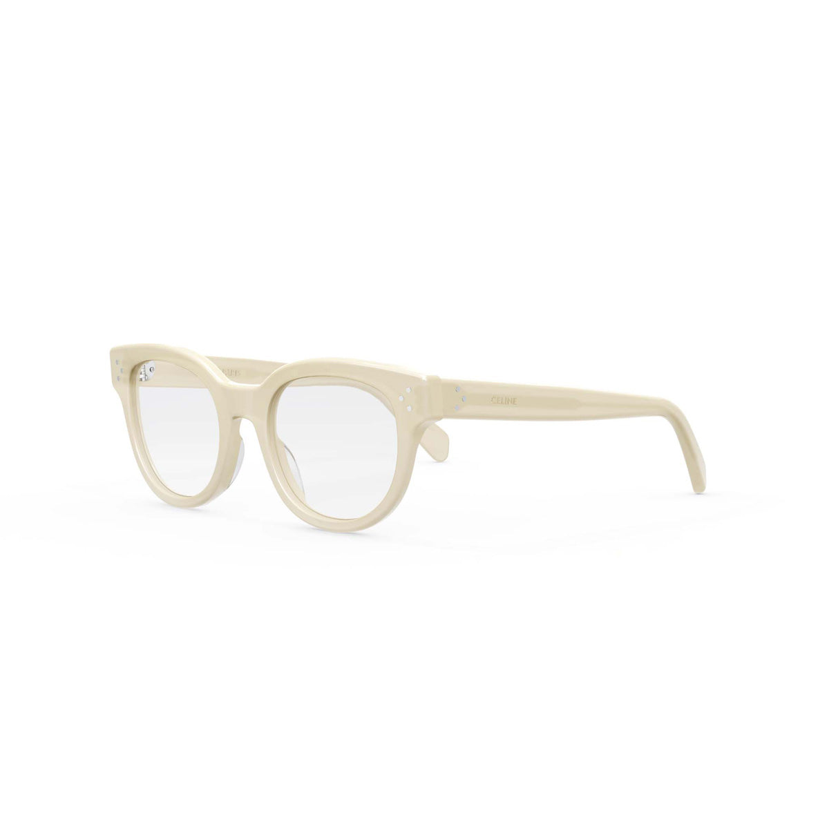 Make a bold statement with these Celine specs. The rounded shape and subtle cat-eye silhouette flatters a variety of face shapes, while the sleek metal arms and Celine logo exude luxury. Slip on these Celine spectacles to elevate any outfit with instant chicness and make a subtle yet standout fashion statement.