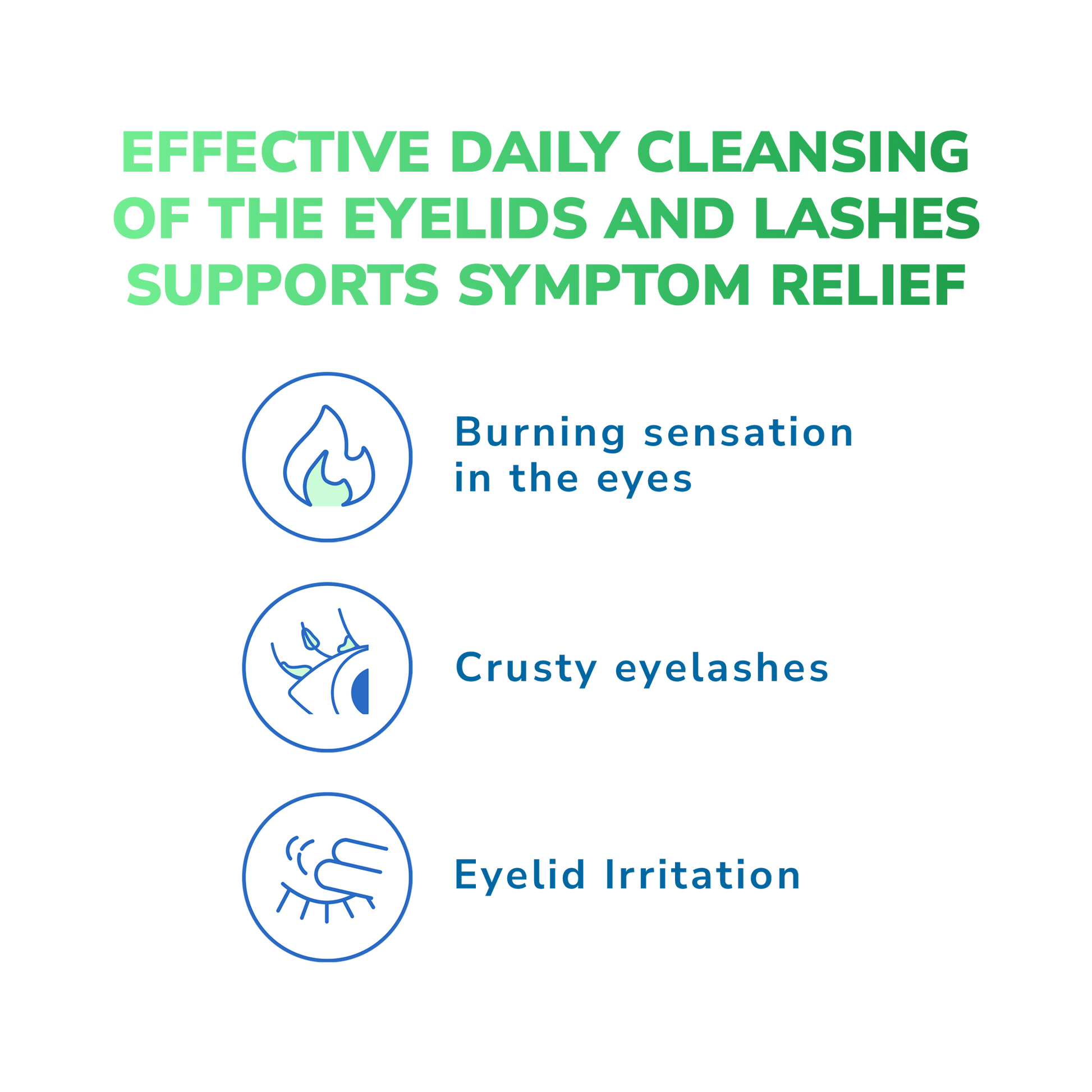 Cleansing your eyelids daily will help remove debris, bacteria and oils that can often lead to Blepharitis, MGD or Dry Eye symptoms.