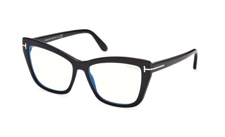 Frame your face in retro-chic style with the Tom Ford oversized cat eye glasses. Channel old Hollywood glamor and modern elegance with these dramatic rectangular frames featuring an exaggerated cat eye shape. Blue light filtering lenses boost eye health while you work and scroll. Look polished yet playful in these feminine prescription glasses that make a unique fashion statement.